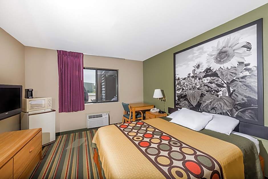 This room has air conditioning, microwave and refrigerator.